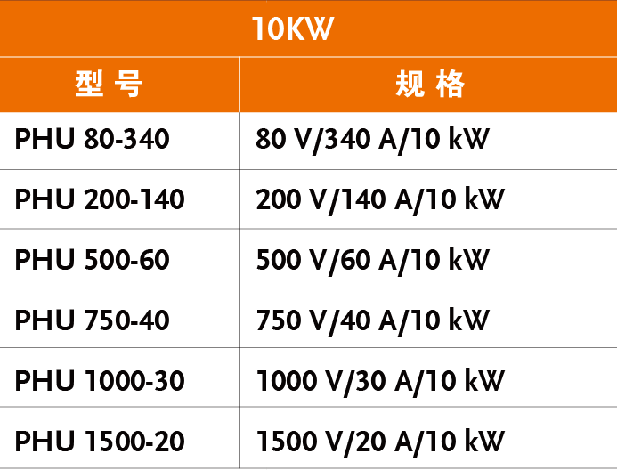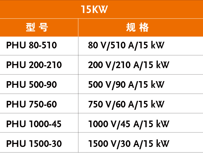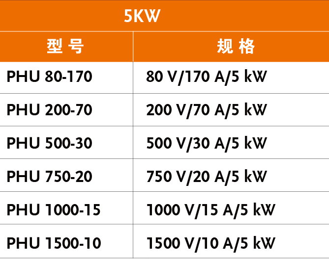 共有18種型號,包括3種功率容量(5kW/10kW/15kW)和6種電壓(80V/200V/500V/750V/1000V/1500V),以滿足所有客戶的需求。