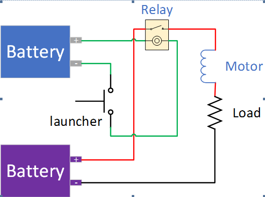 繼電器應(yīng)用于電動車的架構(gòu)如下圖,當(dāng)啟動器發(fā)動的瞬間,也同步接通拉載的電流。