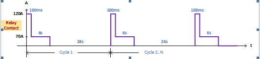 電動車?yán)^電器組件的拉載電流時序可簡化模擬成以下時序圖