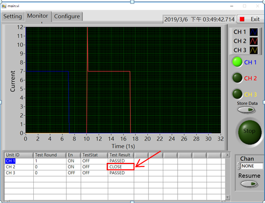 測試軟件也加入了一個特別的功能,當(dāng)異常的繼電器被更換成下一個正常的繼電器后,程序可以繼續(xù)執(zhí)行測試,被更換的繼電器測試數(shù)據(jù)會重新累計,而沒被更換繼電器測試數(shù)據(jù)會繼續(xù)累計計算。此功能可透過程序中的 Chan 及 Resume 來執(zhí)行達(dá)成